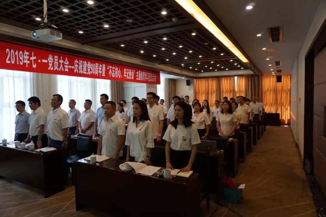 2019年7月1日上午10点,伴随着会场奏响的国歌,兴蜀公司2019年“七·一”党员大会正式开幕。兴蜀公司党委书记任远同志带领大家学习习近平总书记“不忘初心、牢记使命”主题教育工作会议发表的重要讲话。兴蜀公司总经理、党委副书记杨庆同志作“不忘初心、牢记使命”主题教育党课。随后副总经理钱霄同志宣读2018年度先进党支部、优秀党务工作者、优秀党员表彰文件,并进行表彰。大会最后四川省煤田地质局“不忘初心、牢记使命”主题教育活动第五指导组成员顾江同志作了讲话,兴蜀公司纪委书记何隆贵同志对本次学习交流活动进行了总结。
